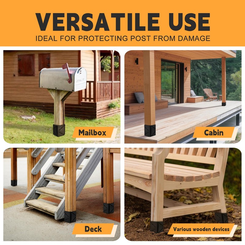 • Deck Post Base:Adjustable Post Protector can provide all-round protection for porch railings, pergolas, gazebos, fences, deck brackets, post brackets and mailbox post brackets.