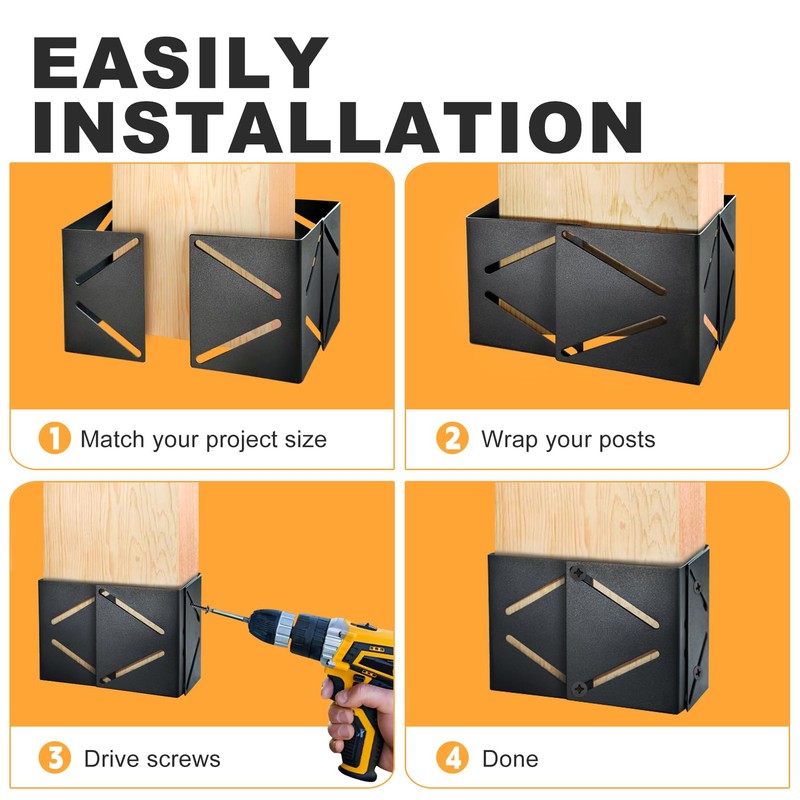• Easy Installation: 8 countersunk screws supplied for 4x4(3.5"-3.5") post fixation.ideal for DIY projects around the home or yard. If you have any installation questions or other problems. Feel free to contact us.
