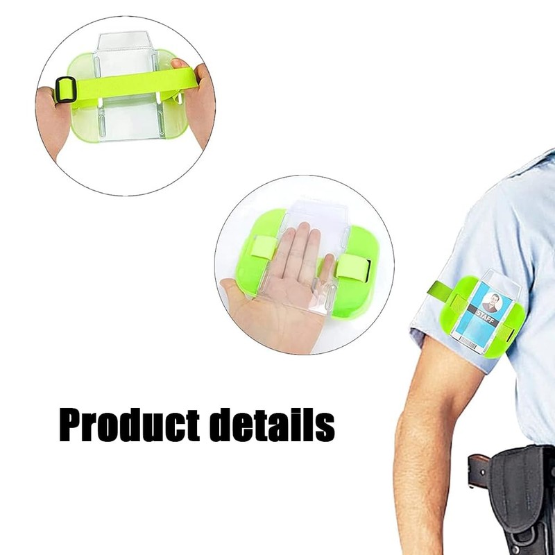 - badge holder is made of durable PVC material, sturdy and waterproof; It has adjustable strap for various sizes of upper arms in order to improve comfort and ensure a firm fit.The strap is strong enough to withstand different fittings on/ off the arm