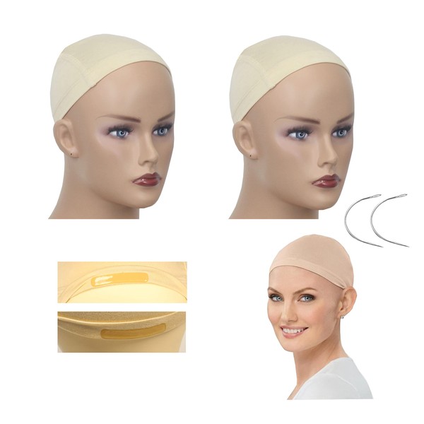 2 Packs Bamboo wig Cap Elastic Comfortable silicone gripWearing liner (Average, Beige)