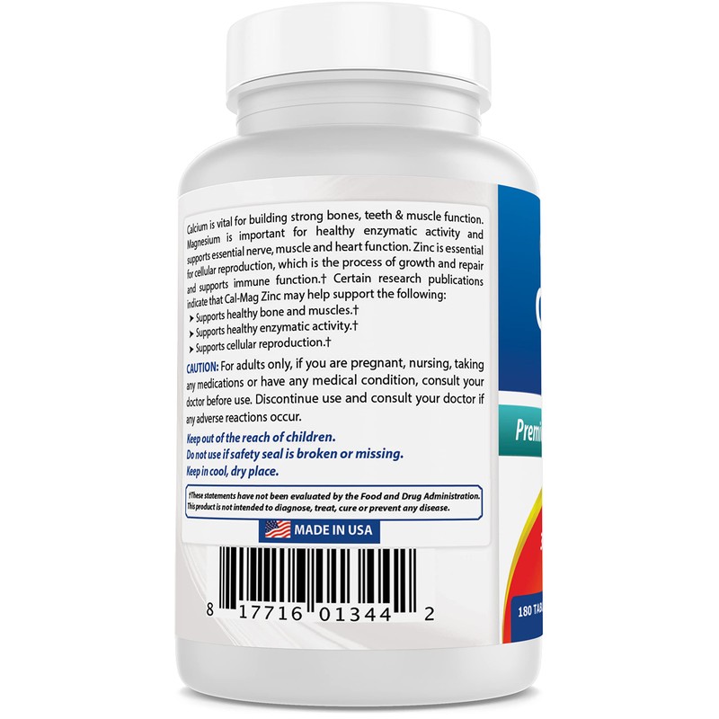 - Calcium 1000mg - Magnesium 400mg - Zinc 25mg per Serving (3 Tablets)