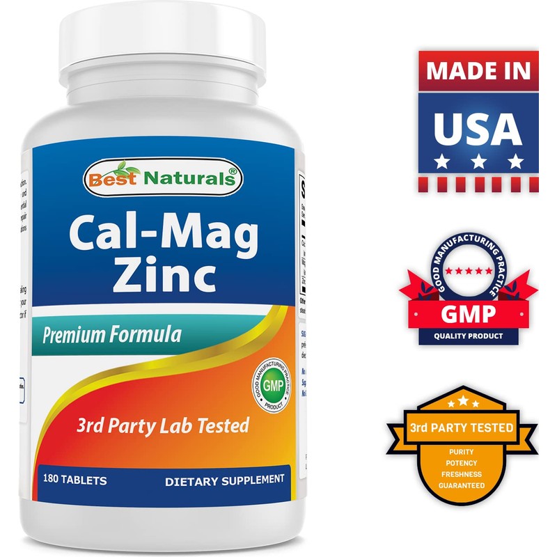 2 Packs - Best Naturals Calcium Magnesium Zinc - 180 Tablets - Essential Cal Mag Zinc Mineral Complex (Total 360 Tablets)