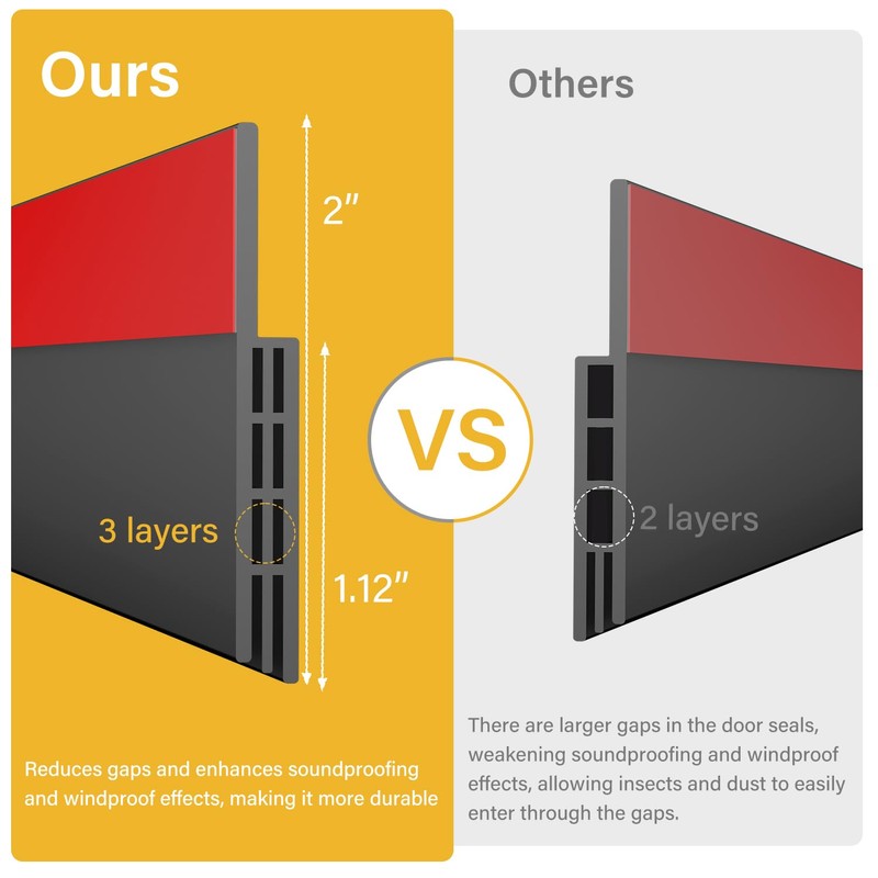 - 【PERFECT DESIGN 】- Door bottom sweep The door uses a triple design to effectively reduce noise and prevent dust from entering the door, and the door plug at the bottom of the door keeps the room quiet and clean. Self-adhesive door choke is ideal for covering gaps in indoor and outdoor doors, RV doors, shower rooms, baseboards, thresholds, Windows, garages, basements, furniture, etc