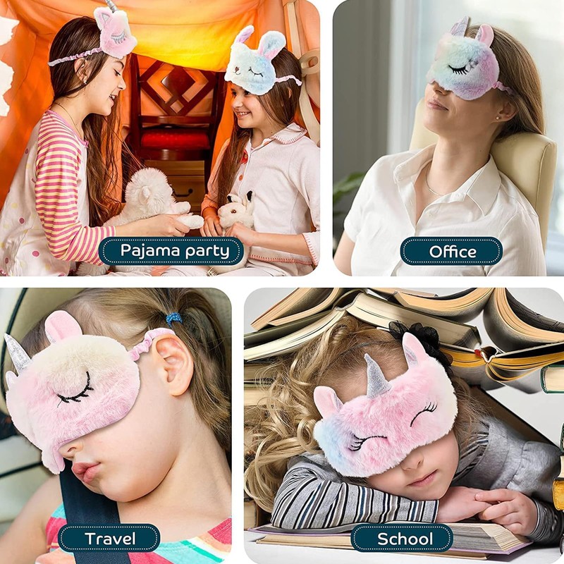 2 Packs Eye Mask for Sleeping - Cute Annimal Eye Mask Unicorn Cat Soft Plush Eye Covers for Grils Kids