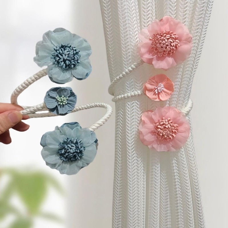 - Flower Curtain Buckles: Our curtain tiebacks clips come in a pack of 2, and each curtain tieback is carefully handcrafted and designed with beautiful flowers. The strap is 17.7"/45cm long and fits most standard curtains.