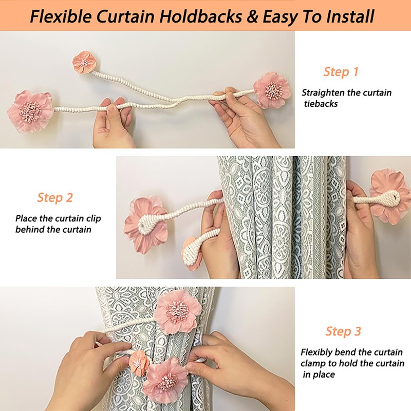 - Effortless And Convenient: No tools, drilling, or screws required. Simply twist the flexible flower strap onto the curtain and secure it with our unique twisted branches. These flexible tiebacks can be easily twisted into different shapes to match your personal style.