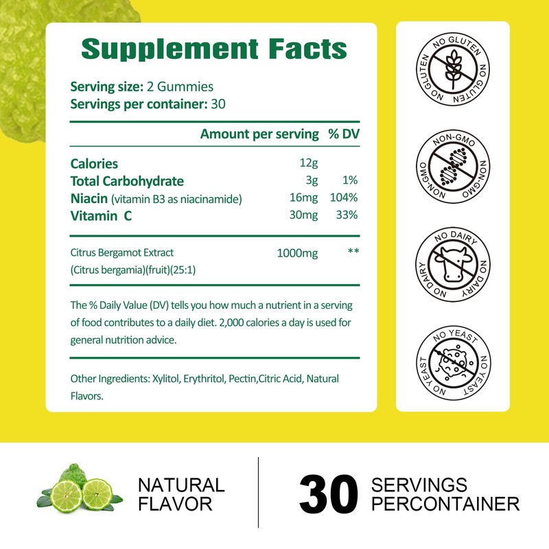 - Natural Ingredients: Bergamot supplement is a natural supplement that contains compounds with high antioxidant activity - flavonoids and other health compounds. Flavonoid compounds are important antioxidants that have a variety of cholesterol-lowering effects on the human body in addition to No-aging.