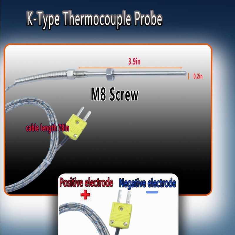 2 Packs tce-k05h5-100 K-Type thermocouple Probe M8 Screw Temperature Range 77°F to 1472°F