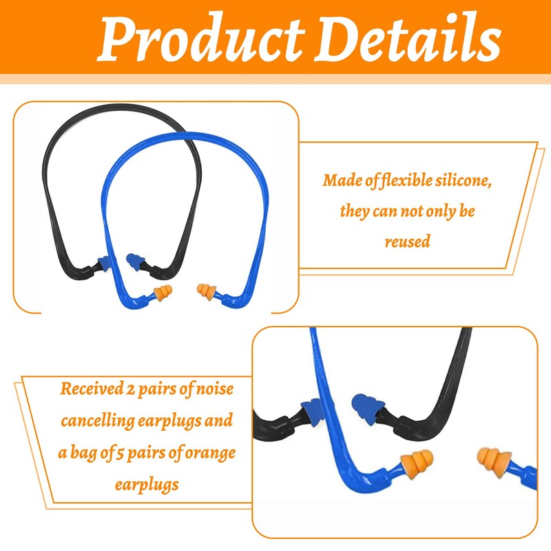 - Angenehm zu tragen:ear protection Der ergonomische Bügel der Ohrstöpsel kann unter dem Kinn oder im Nacken getragen werden,ohne unangenehmen Druck auf Kopf oder Ohren auszuüben.Sie können sie bequem beim Schlafen tragen.