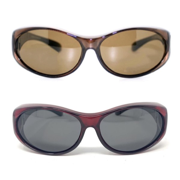 2 Pair of Women's Polarized Fit Over Oval Sunglasses (Red and Brown)