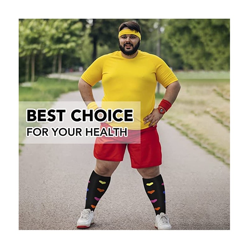 - More Size Choice - Plus size (2XL-7XL) you can refer to the size chart to choose the suitable size (and in general we suggest you choose the larger size if you are hesitating between two sizes). Our knee-high compression socks have nice and snuggly support without being too tight and enhance blood circulation effectively.