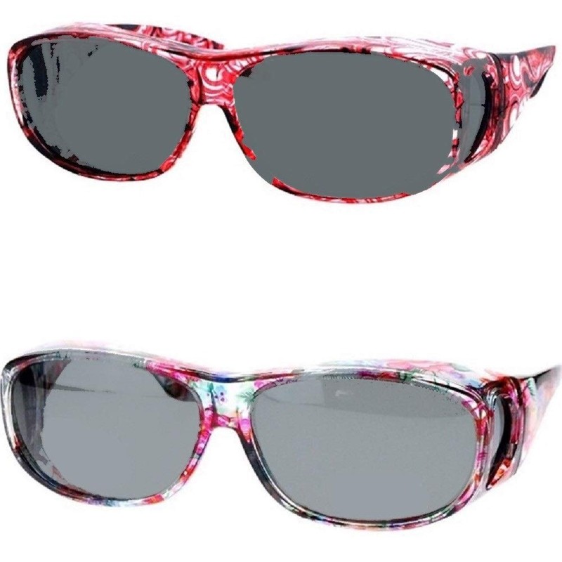 2 Pair Polarized Fit Over Oval Rectangular Sunglasses -8866JP2-Light Red/Floral