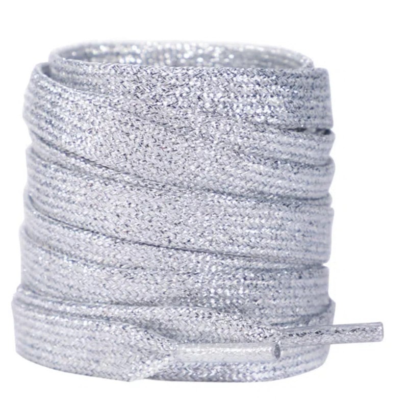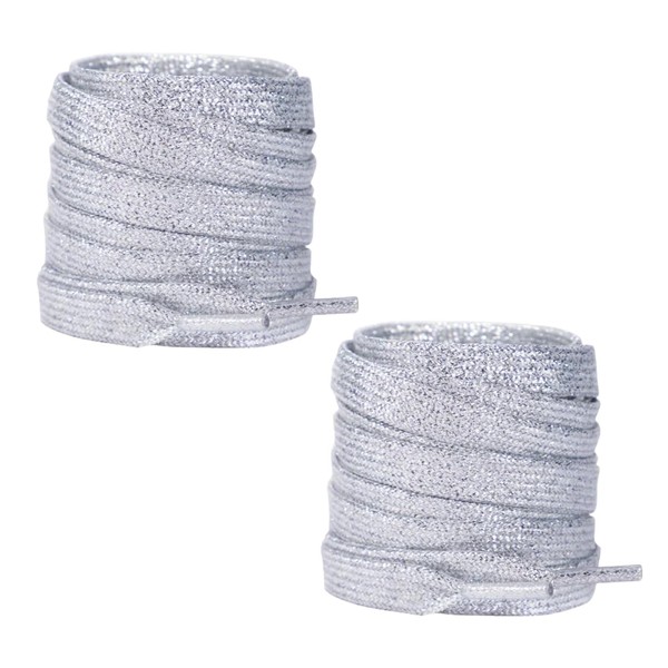 2 Pairs 140cm Metallic Glitter Flat Shoelaces Sliver 10mm Sparkly Polyester Shoe Laces Replacement for Sneakers