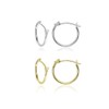 2 Pair Set 14K Yellow & White Gold Tiny Small 12mm High Polished Round Thin Lightweight Unisex Hoop Earrings