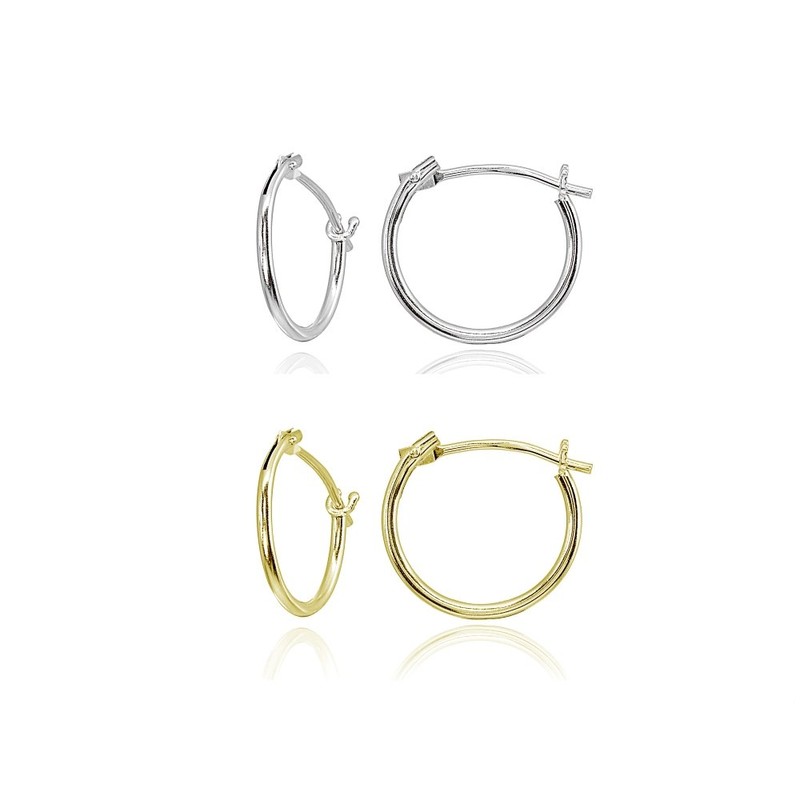 - FEATURE – These fashion hoop jewelry earrings display two pairs of 12mm mini round high polished lightweight click-top hoop earrings. They have a comfortable fit and are the perfect size. They can be used as a hoop cartilage earrings and hoop piercing earrings. This earrings set should be an addition to your fine jewelry or fashion jewelry collection. It can be purchased as hoop earrings for men, hoop earrings for women, hoop earrings for adults or hoop earrings for teen girls.