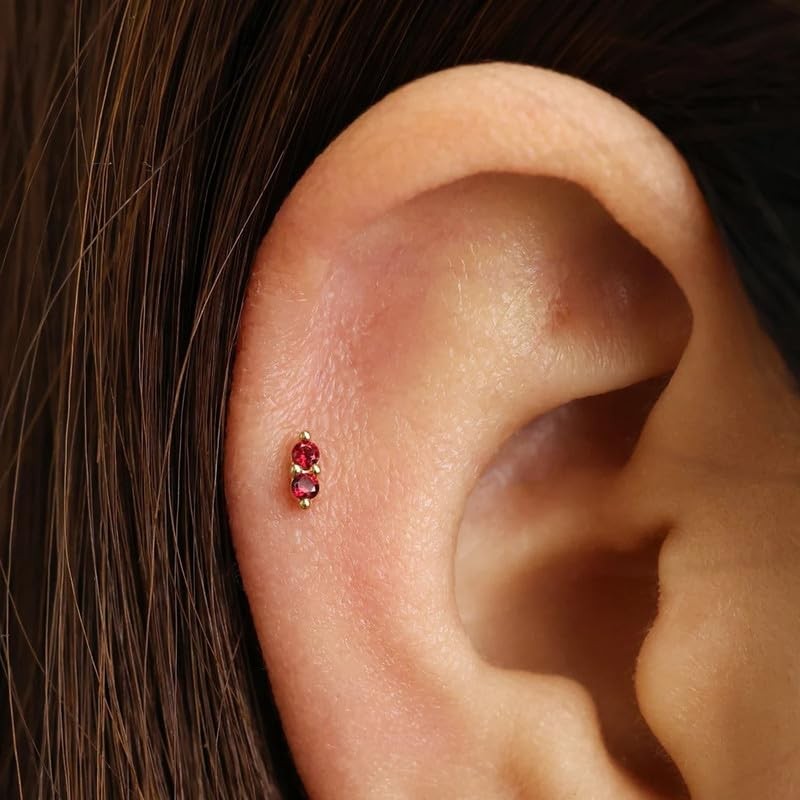 - SUPER TINY SIZE: Double 2mm birthstone, Post Length: 7mm, Thickness available: 20ga (0.8mm), 18ga (1mm), 16ga (1.2mm).