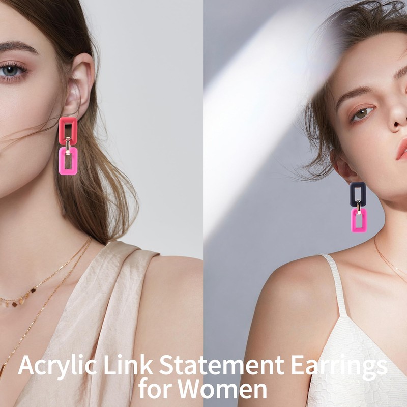 - [ Fashionable Earrings ] These bohemian orange red pink rose red black earrings crafted with acrylic drops, the big drop earrings designs are extremely fashionable with charms, designed with cute geometric chains. Acrylic earrings are delicately made and carved with vivid colors, elegant and trendy. Every pair of earrings are unique and eye-catching.