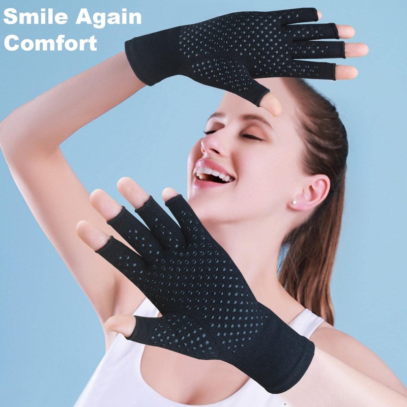 - Open Finger Design - Arthritis Gloves, Perform everyday tasks like using phone, typing, cooking and more without interference. Opening is set at optimal length to provide perfect balance between beneficial compression support and finger mobility.