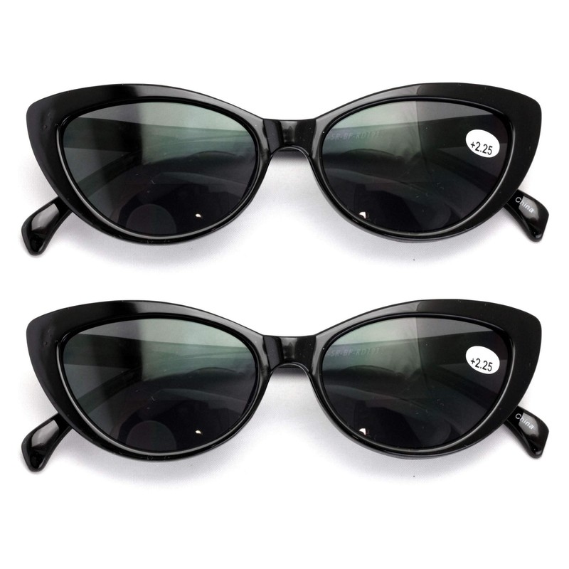 2 Pairs BIFOCAL Women Cateye Black Tortoise Reading Sunglasses - Outdoor Cat Eye Readers (2 Black, 2.00)