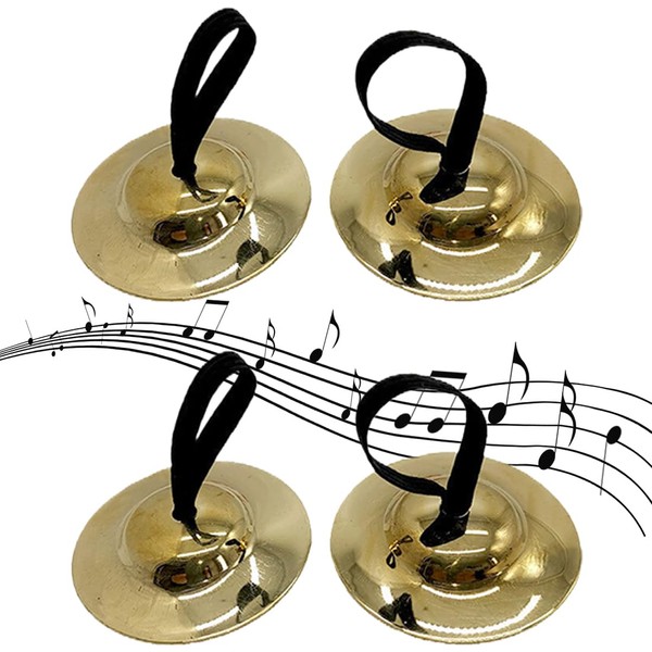 2 Pairs Brass Finger Cymbals Hand Drums with Elastic Bands for Musical Instru...