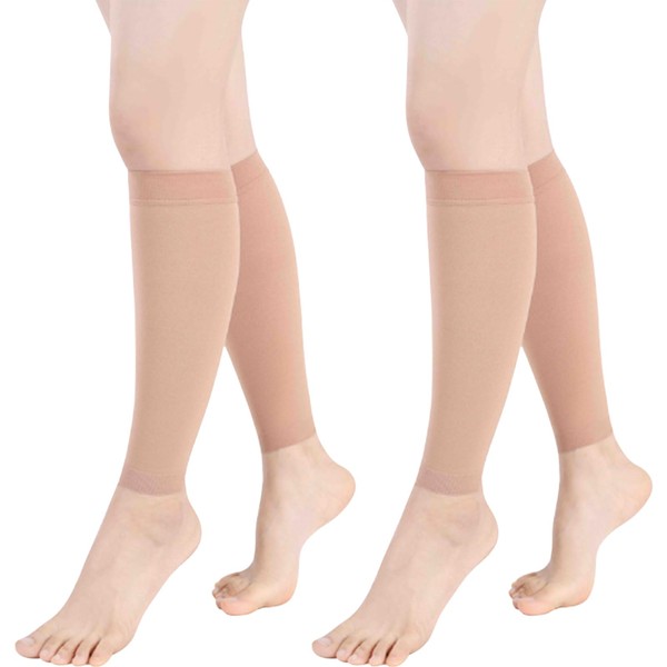 2 Pairs Calf Compression Sleeve Womens & Men,Footless Compression Socks for Women Calf Sleeves 23-32mmhg Flight Socks for Running Flying Nurses Varicose Veins (Nude, S)