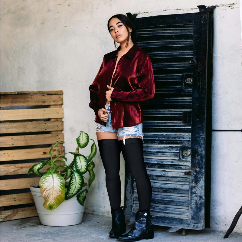 - PREMIUM COMFORT: Our thigh high compression socks for women are made of 80% nylon and 20% spandex for optimal stretch and durability. Flexible but snug in wider cuff with silicone dot band helps the socks remain in place throughout the day. Thicker, ultra-stretchy fabric is for donning easily.