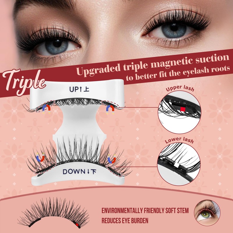 The magnetic eye lashes kit comes with instructions and an applicator, which is friendly to beginners and professionals. Once you get the hang of it, putting them on takes you 10 seconds. With magnetic lashes, you can wear beautiful eyelashes anytime and anywhere, making you more shining in everywhere.