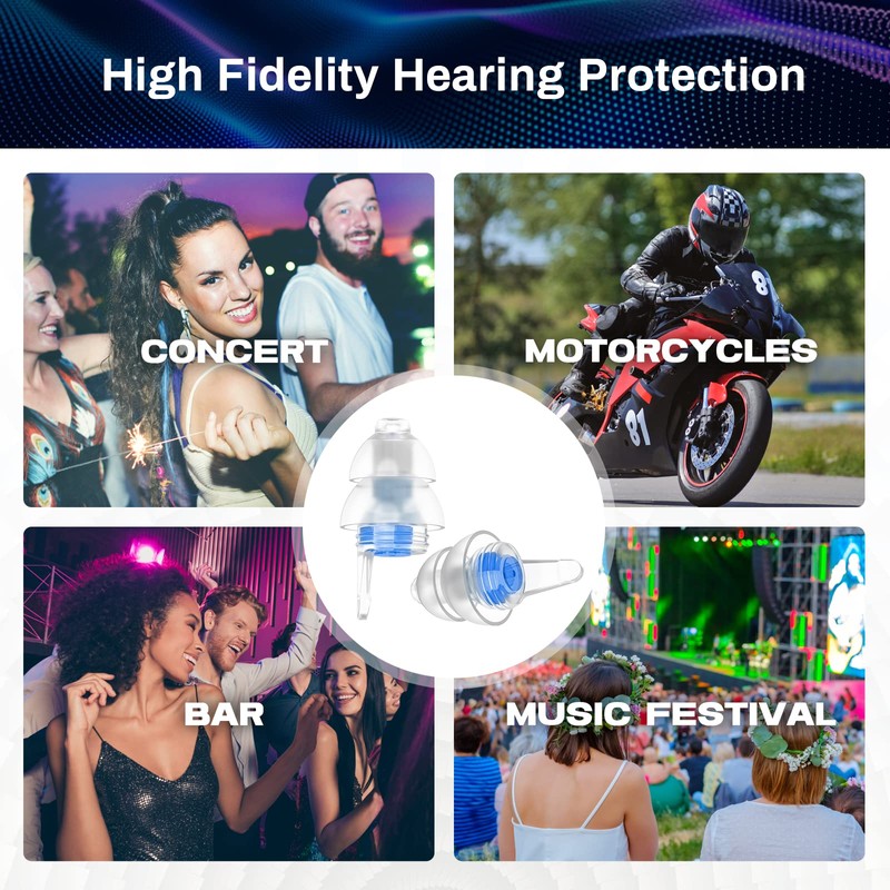 - Pristine sound quality: music earplugs protect your hearing at concerts, festivals or playing music, preserve sound quality, but avoid noise pollution. Multi Use Great for musician earplugs, concert earplugs, motorcycle earplugs, soft ear plugs for drummers, hearing protection for heavy machines, festival earplugs, sound proofing, learning, focus and sporting events.