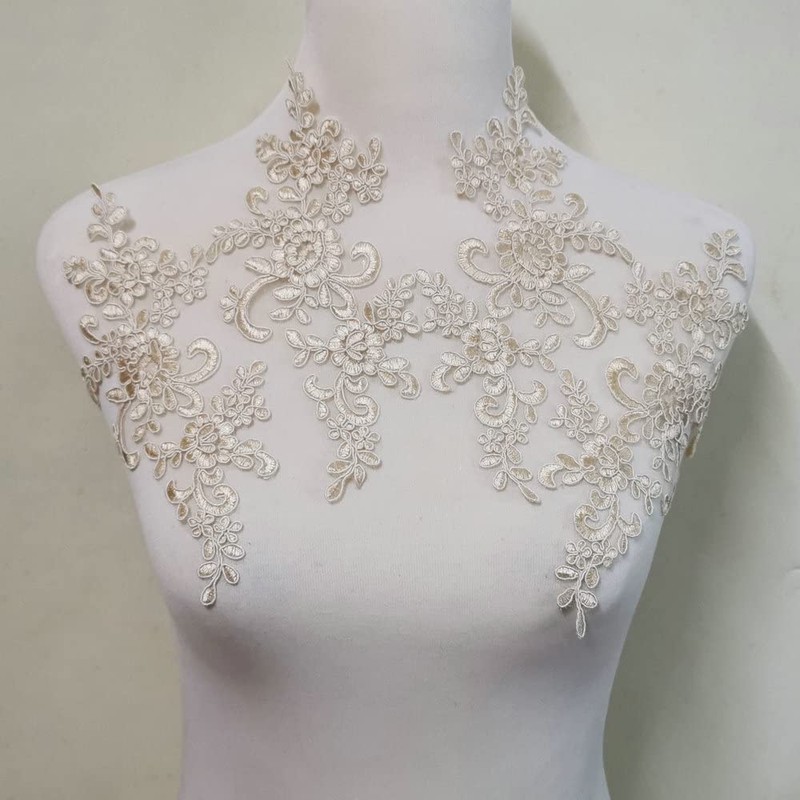 2 Pairs of Embroidered Lace and Decal Wedding Dress Accessories for Lace Accessories (Light Champagne Color)