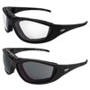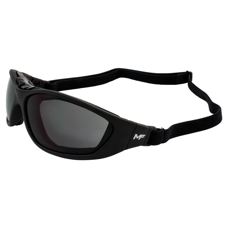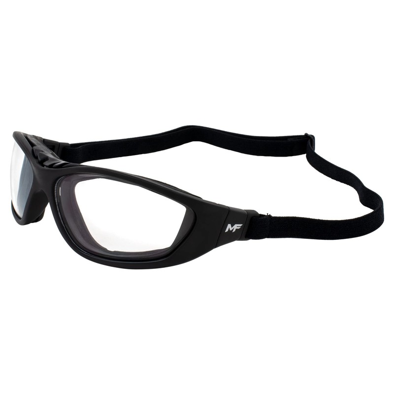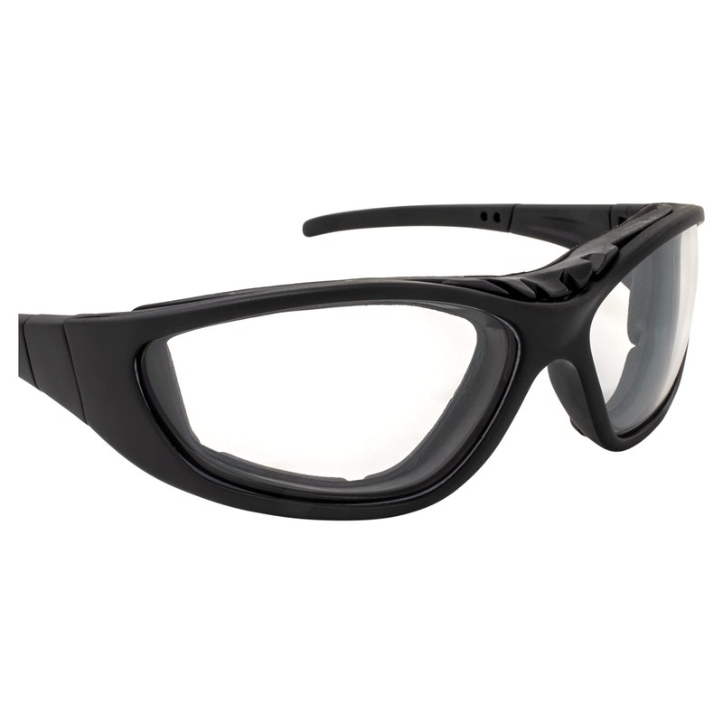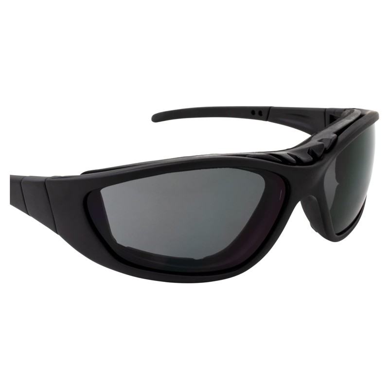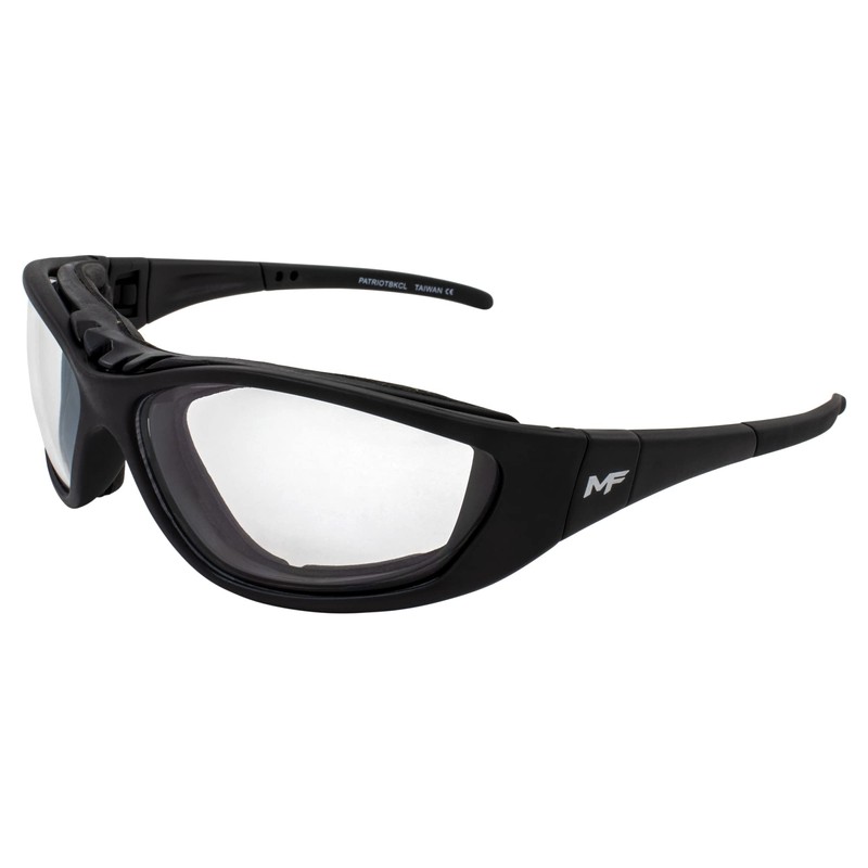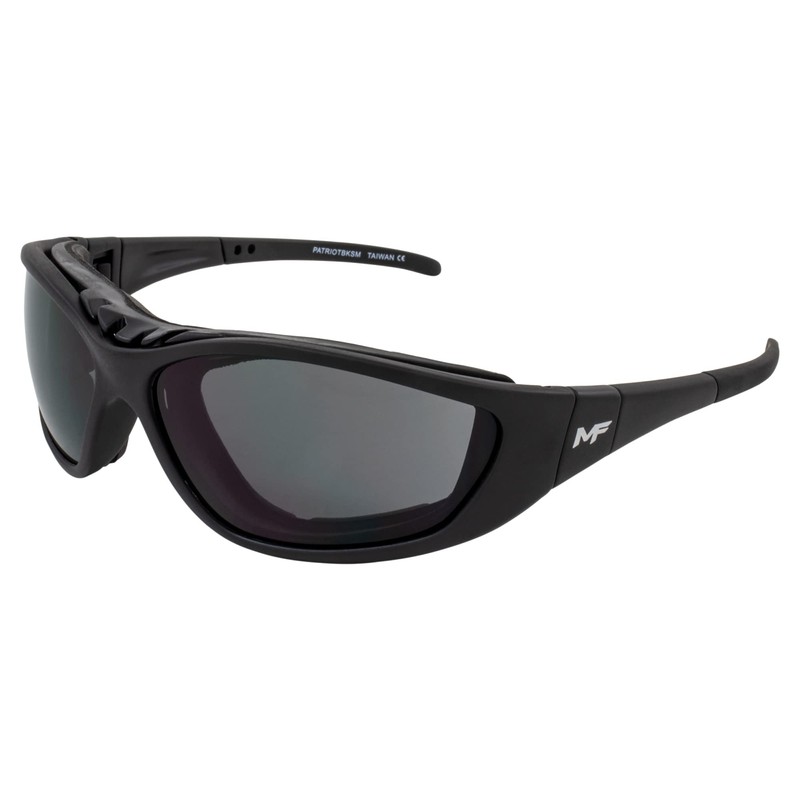 Three pairs of sunglasses in one? Yep. Want regular glasses? Check. Want a pair of foam riding glasses? We got you. Do you need full-on goggles? Look no further. The Patriot safety and riding glasses combine the advantages of multiple pairs of eyewear into one. It can be worn as a foam-padded riding glass or when needed, the airy foam can be removed and the glasses can be worn as a regular sports wrap. The glasses' easily removable arms can be replaced with the optional elastic strap, transforming your Patriot foam-padded riding glasses into Patriot goggles. The high-quality lenses have antifog coatings and provide UV400 protection from the sun's potentially dangerous ultraviolet rays. When you wear the Patriot, the polycarbonate lenses will give you the peace of mind that comes with knowing that your eyes will be shielded from harm to the greatest extent possible. It has a +2.0 magnification on the bottom portion of the lens, which is used for close-up viewing, and a regular lens on the top portion, which is used for distant viewing. This allows you to comfortably switch between reading and looking at something in the distance without constantly taking them off and putting them back on, as other sunglasses require. These motorcycle padded glasses come with clear and smoke lenses. Clear lens is ideal for indoor use as well as during night rides or in heavily shaded areas while the smoke lens is most effective in bright conditions because they reduce glare and improve visibility. Safety. Style. Three functions in one great-looking pair. Who says you can't have it all? With our Patriot Bifocal Safety Glasses, you can have it all!