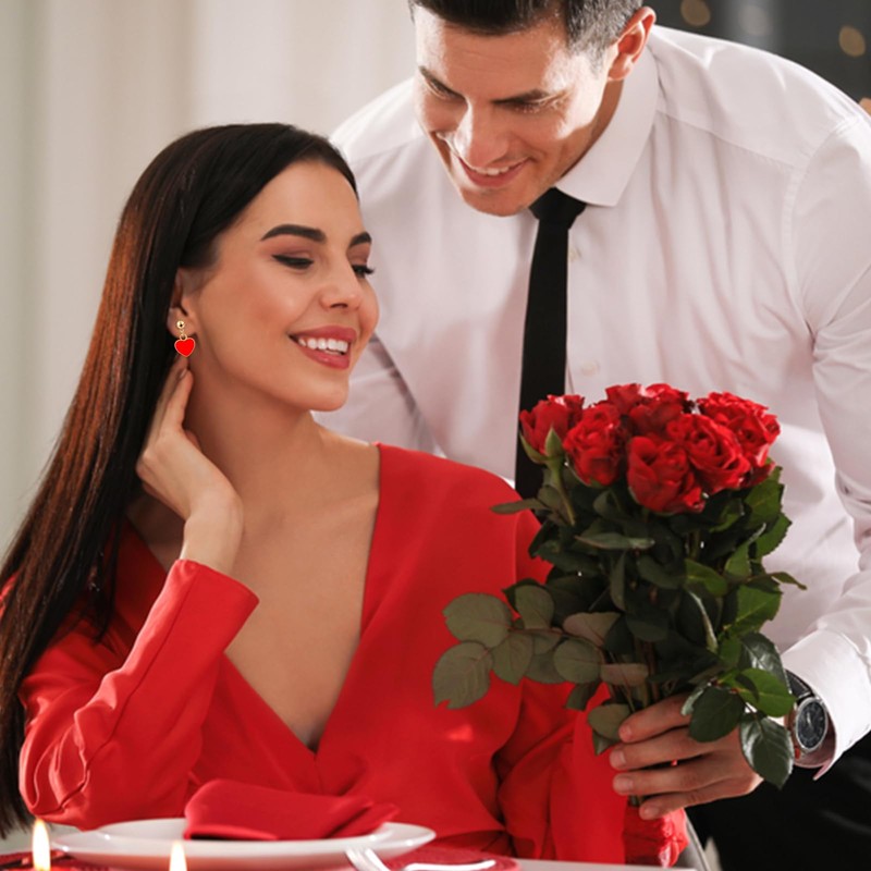 - Fashionable and versatile: red heart earrings are not only suitable for a variety of everyday wear, but can also be easily combined with evening dresses or business clothing. Whether in the office, on a date, at a party or a wedding, heart earrings red can be the highlight of your look.