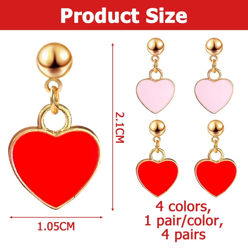 - Small and exquisite: the heart earrings size is 2.1 × 1.05 cm, which is a moderate size, not too exaggerated and can perfectly beautify your ears. Whether you wear it for everyday use or for a special occasion, red heart earrings can give your overall look a touch of bright colour and highlight your fashion awareness.
