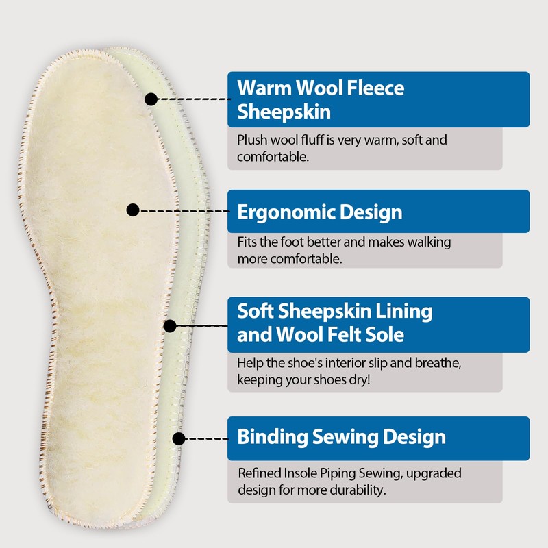 - In cold seasons, plush insoles can effectively insulate cold air, keep your feet warm and you no longer afraid of invasion of low temperatures. It is recommended that women wear the same size, men one size larger and men's leather shoes two sizes larger.