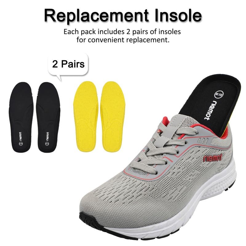 [2 Pairs] riemot Memory Foam Insoles for Women,Comfort Insole Shock Absorbing Foot Pain Relief Trainers Inner Soles Black 42