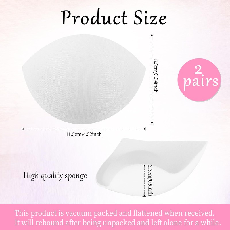 2 Pairs Small Size Women's Push Up Bra Pads Inserts Breast Enhancers,11.5 * 8.5cm, White Bra Cups Insert or Sew In, Large Cup Bust Lifter, Breast Enhancer Cups Fits A Cup