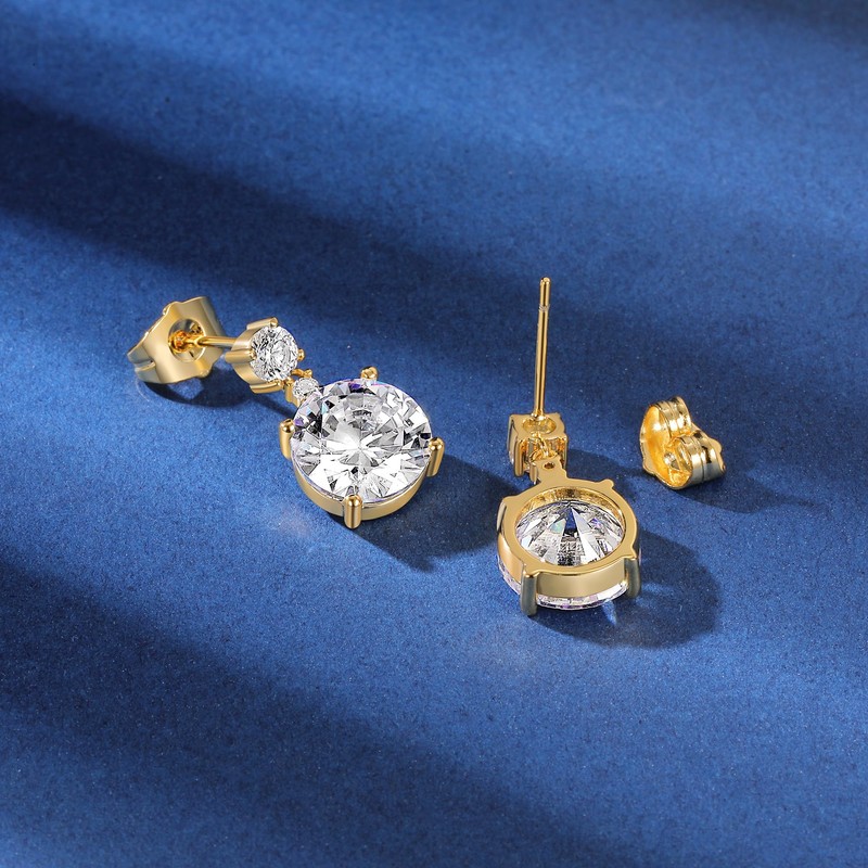 - 【18K Yellow Gold Stud Earrings Sets】2 Pairs hand-crafted in Brass with 18K Yellow Gold Plated Earrings featuring Sparkling AAA+ cubic zirconias.The trendy design makes the earrings reflect light from different angles.
