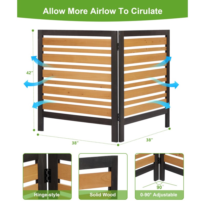 2-Panel Outdoor Air Conditioner Fence Screen, Outside Wood Privacy Fence, Backyard Garden Patio 38" W x 42" H