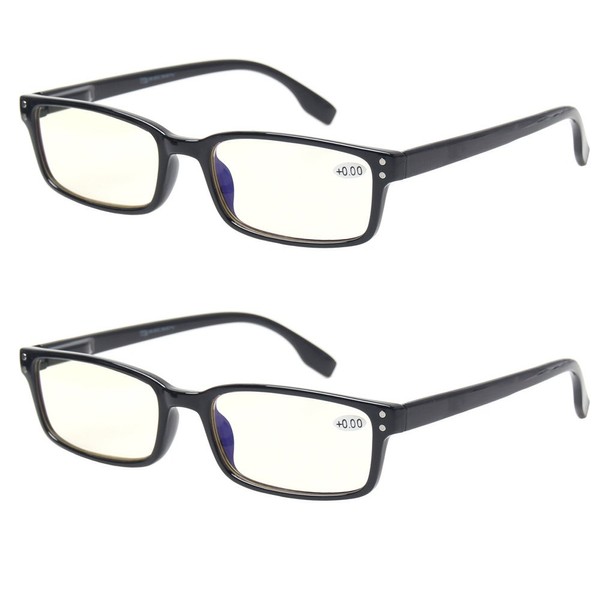 2 pares de anteojos de lectura de computadora, protección UV, anti rayos azules, antirreflejos y resistentes a los arañazos, 2 Pack negro, 0