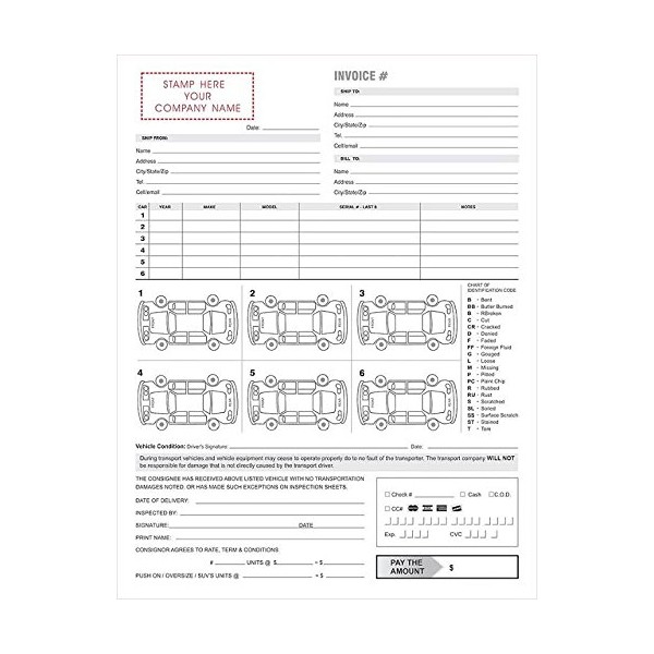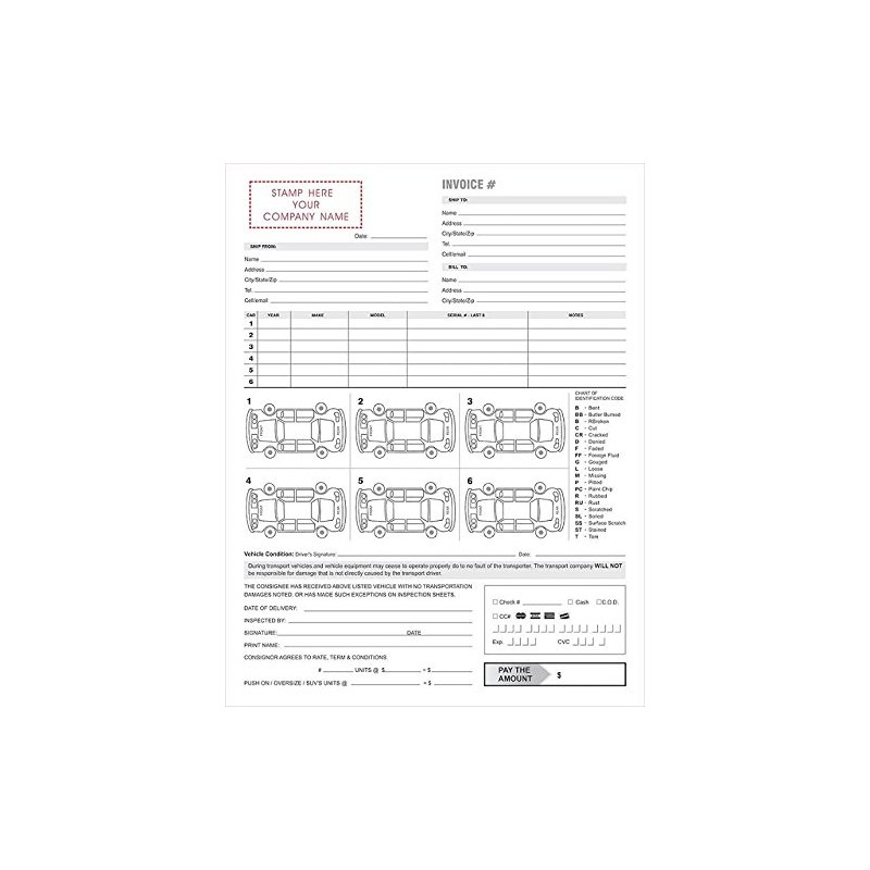 2 Part Vehicle Auto Transport Bill of Lading and Invoice Form