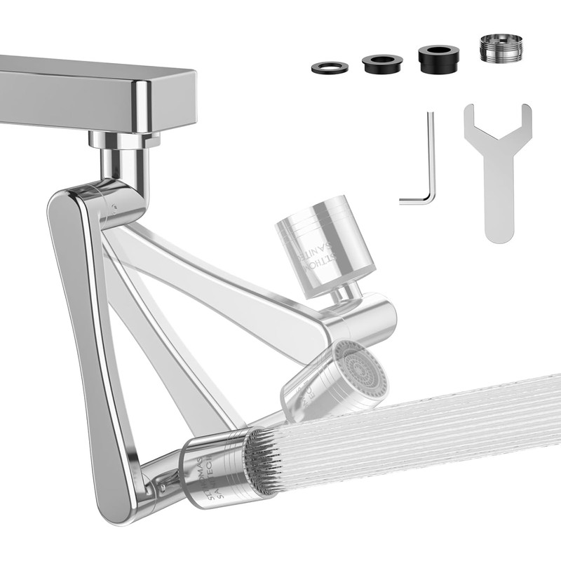 - 2-Mode Outlet & Space-Saving Sink Tap Extender:Easily switch between a soft bubble stream and a powerful shower spray by rotating the rubber ring on the aerator—perfect for quickly rinsing fruits, vegetables, and other surfaces. The non-slip design ensures easy operation, even with wet or soapy hands. The aerator's ball joint lets you adjust the water direction effortlessly. Plus, the foldable robotic arm is compact and won’t take up unnecessary space or become a bulky obstacle in your sink.