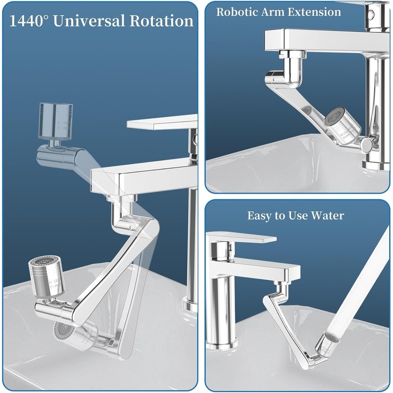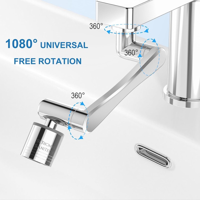 - 1080-Degree Rotating Faucet Aerator:This faucet attachment features a water filter aerator with free swivel joints, ensuring a leak-proof design. Its 360-degree rotation makes it easy to clean every corner of the sink, wash your face, or even use it as an eyewash station. The foldable spray design allows for convenient storage, saving space when not in use.
