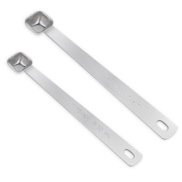 2 Pcs 1/3 Teaspoon(1/3tsp, 1.5ml) 1/16 Teaspoon(1/16tsp, 0.3ml) Stainless Steel Measuring Spoons Single Square Bowl Milligram Measuring Spoons