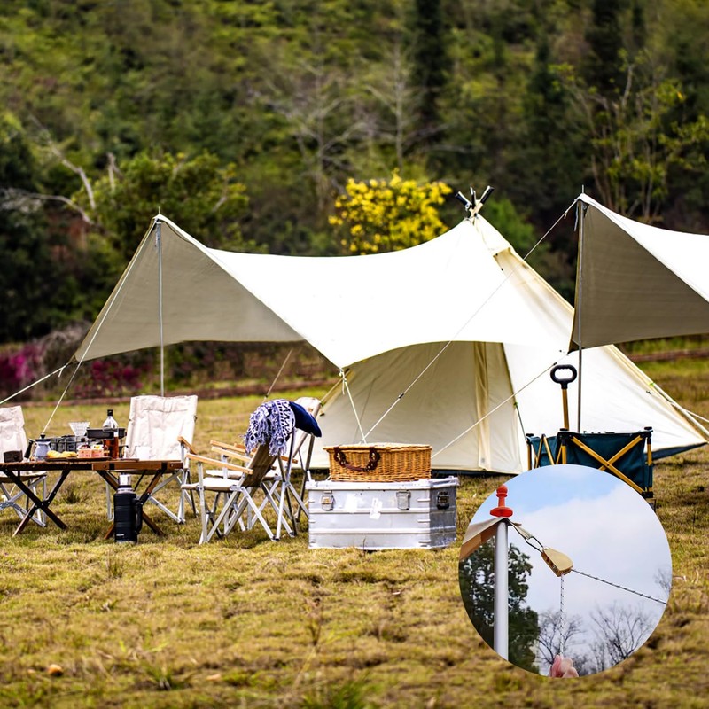 - Adjustable : Push the tent guide rope ratchet pulley adjuster upwards to adjust the length of the rope on one side of the hook, please use the rope on one end of the hook to hang items.