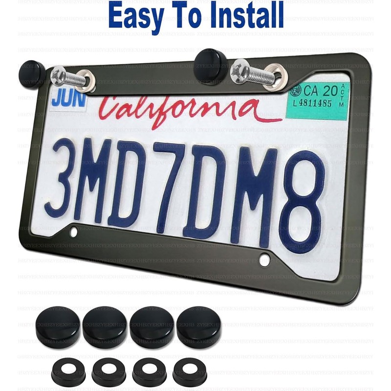 - 🚗Our Standard size USA and Canada 12" x 6" 4-hole Black Anodized Aluminum Car license plate frame. American-made weather resistant and UV stable product, will not fade, rust or tarnish. Free Screw Caps are Included!
