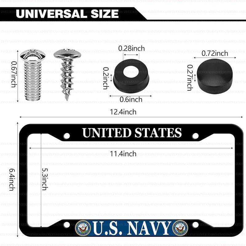 2 Pcs Aluminum License Plate Frame for U.S. Navy,4-Hole Matte Black Car Licenses Plate Covers Holders Frames for Department of The Navy with Screw Caps