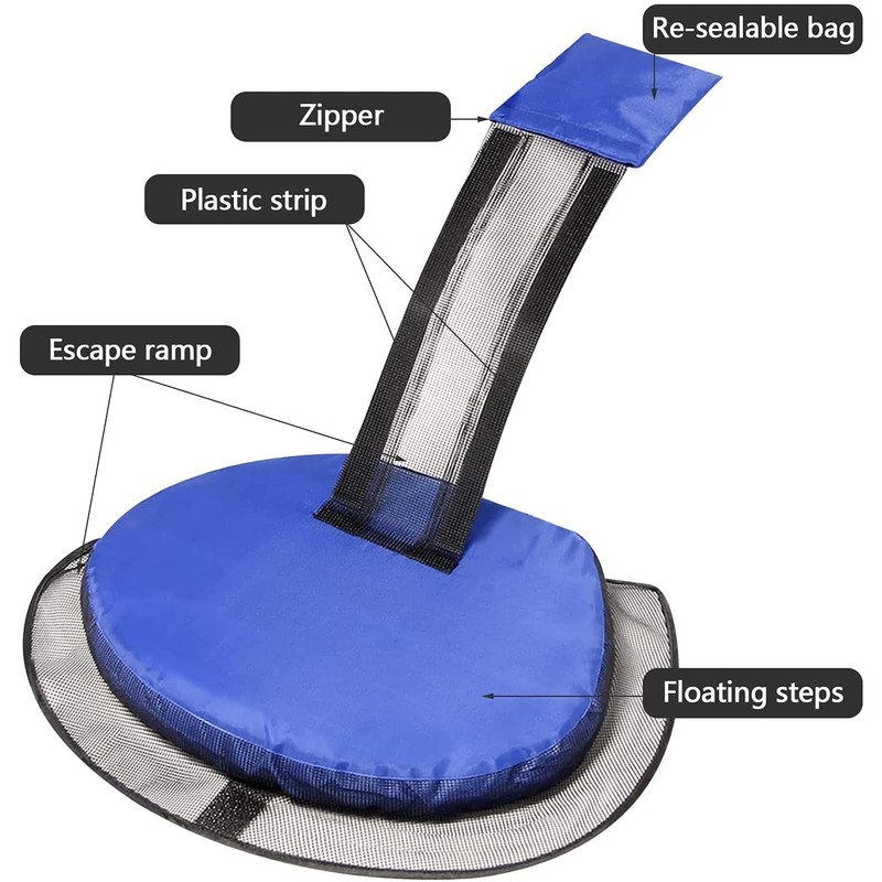• ✔High Quality Materials - The swimming pool animal escape ramps are made of durable Oxford fiber and mesh, strong and durable, not easily damaged, and long-lasting. The inside of the mesh is equipped with an inflatable cushion, which is easy to clean.