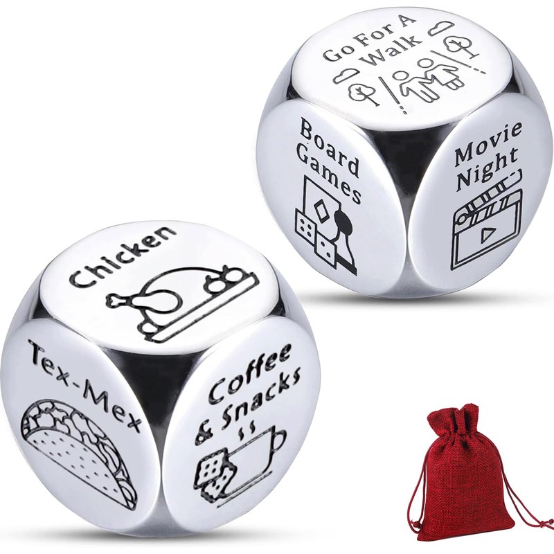 - 【Date Night Gift Idea】If you want to try something new or adventurous on your date, let food dice or date dice make the decision for you! The dice is a date night gift idea which make it a gag funny gifts for him,her,husband,wife,boyfriend, girlfriend, fiancé etc. Of course, it is also a perfect couple gifts, anniversary gifts for women men,Christmas gifts for women men, Valentine's Day gifts for women men.