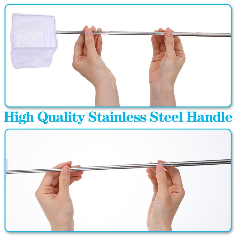 - Extendable Handle for Easy Reach: The aquarium net long handle extends from 5.3 to 15.8 inches, allowing you to reach deep into tanks without getting wet. This feature makes the betta fish net suitable for various aquarium sizes and depths