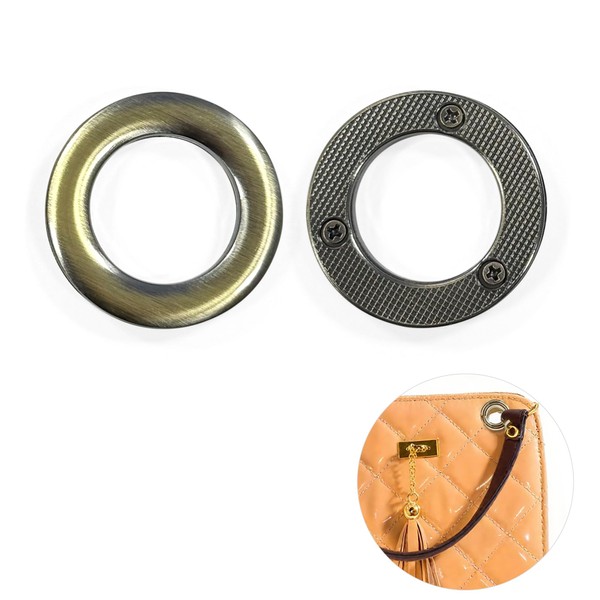 2 Pcs Bag Loop Handle Connector Zinc Alloy Round Alloy Grommet Eyelets for Leather Bags, DIY Sewing Crafts Clothes Replacement Hardware, Metal Screw-in Eyelet Grommets for Bag Making