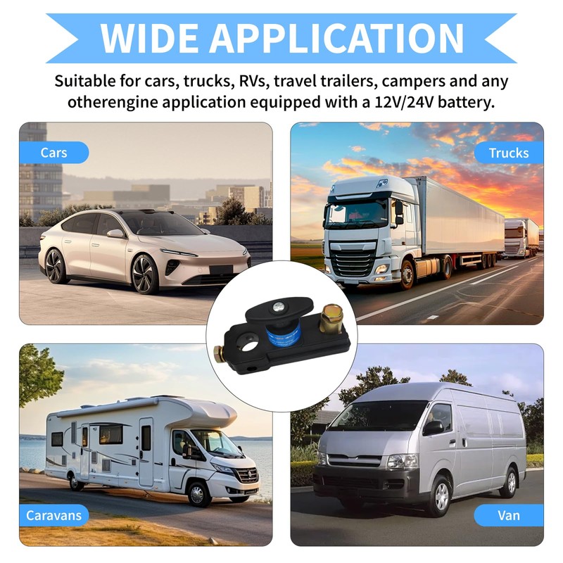 - Prevent Danger: Compatible with 12V and 24V systems, this universal battery disconnect switch is ideal for cars, trucks, RVs, and marine use. Crafted from pure copper, our battery disconnector prevents leaks and ensures top-tier conductivity. Its robust design offers unwavering protection, safeguarding your vehicle’s electrical system from potential threats and ensuring reliable performance when you need it most.